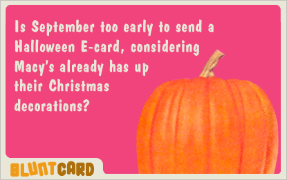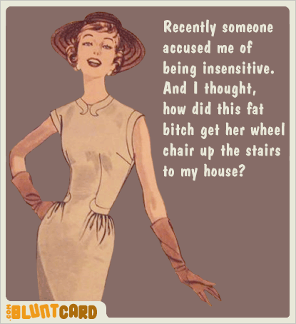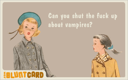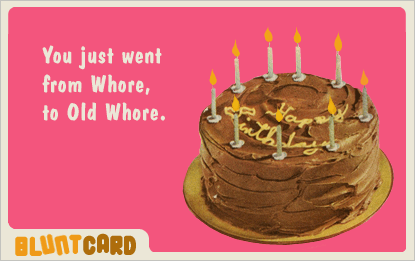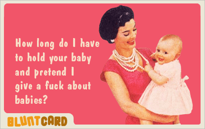 Have you checked out Bluntcards? They are hilarious ecards with amazing pictures and great lines. I've sent a few to some "friends" of mine. Totally kidding, my friends have the same dry sense of humor as me, so they get it and laugh right along with me. Anyway, check out some of my favorites.