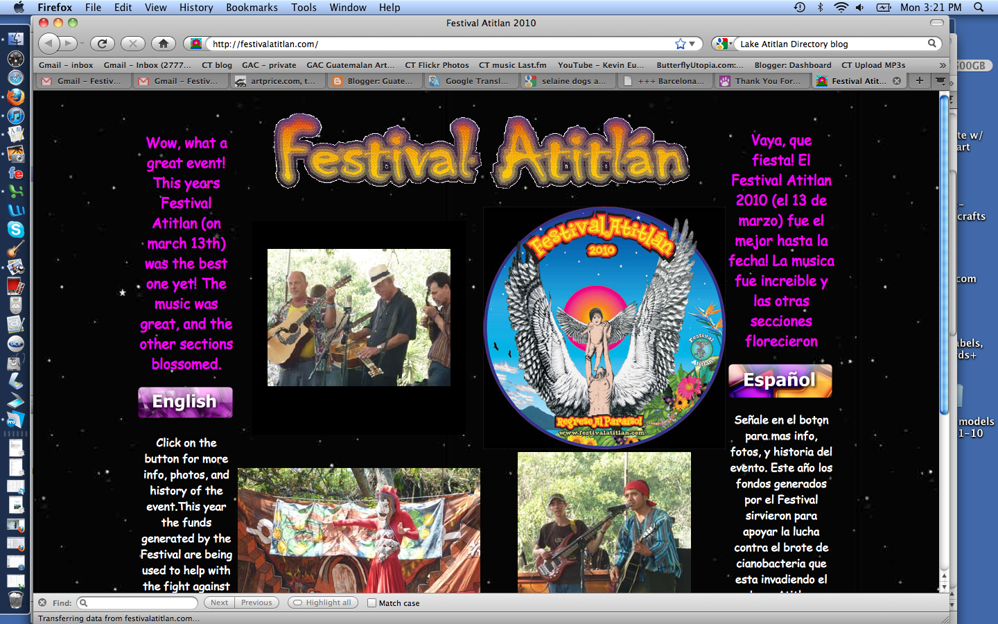 March 19, 2011 will mark the 10th anniversary of the Festival Atitlán. We have gradually been changing and improving things over the years, and have evolved into a very special and unique event. With your help we plan on making this the best one yet. It's time to start moving energies and putting together the threads that will be the Lake Atitlan International Music and Arts Festival 2011.