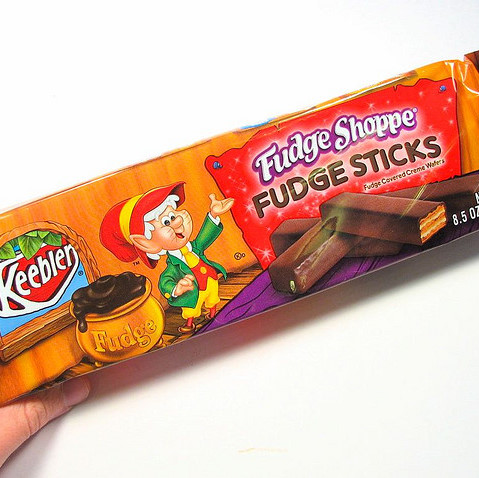 Fudge Shoppe Fudge Sticks. I am in heaven! I eat six of these at a time. I'm not a big cookie person, but I love these right now. They aren’t super rich so I don’t get sick of them like when eating other chocolate. They sort of taste stale because of the consistency of the wafers, but that doesn't stop me. I think I had these three times total in my life, but now I’m going through a pack every few days!