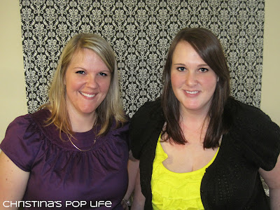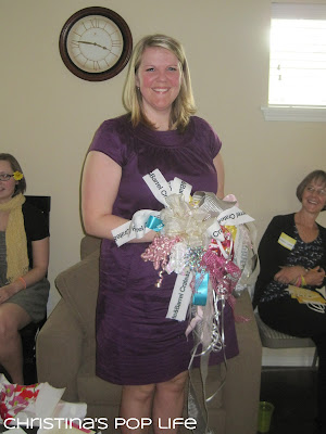 Well, I did it. I threw a successful wedding shower for my sister last weekend. It was a packed house with 24 of us celebrating, but we all had a lot of fun. The theme was damask and lemons with a black, white and yellow color scheme. Among a traditional lunch menu of croissant sandwiches, salads, fruit, veggies and dips, we ate lemon cupcakes, lemon bars, lemon frosted sugar cookies, with lemonade and lemon drop martinis to drink. I had bowls of lemons and yellow flower arrangements all around the house for a pop of color. There were a ton of tissue paper pom poms hanging from the ceiling, which you can see in the background in this picture of my sister and her soon to be mother-in-law and sister-in -law.