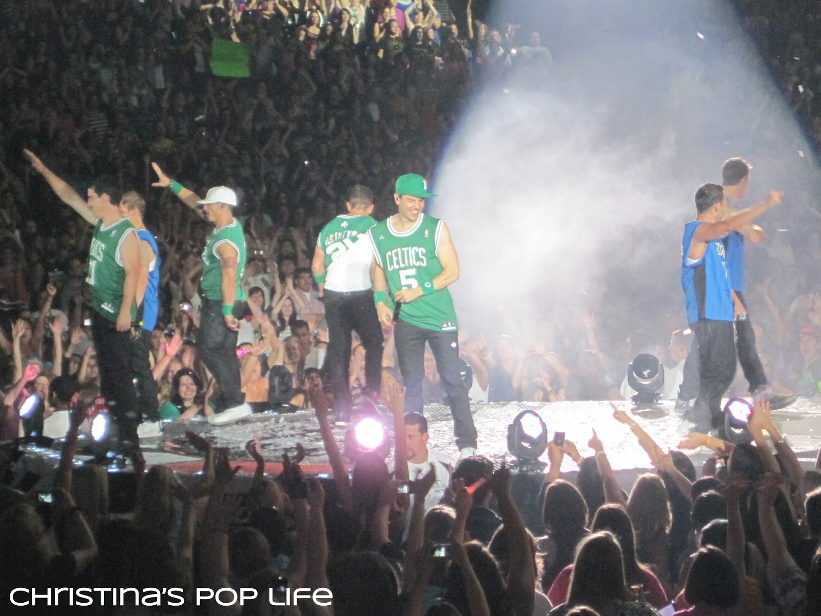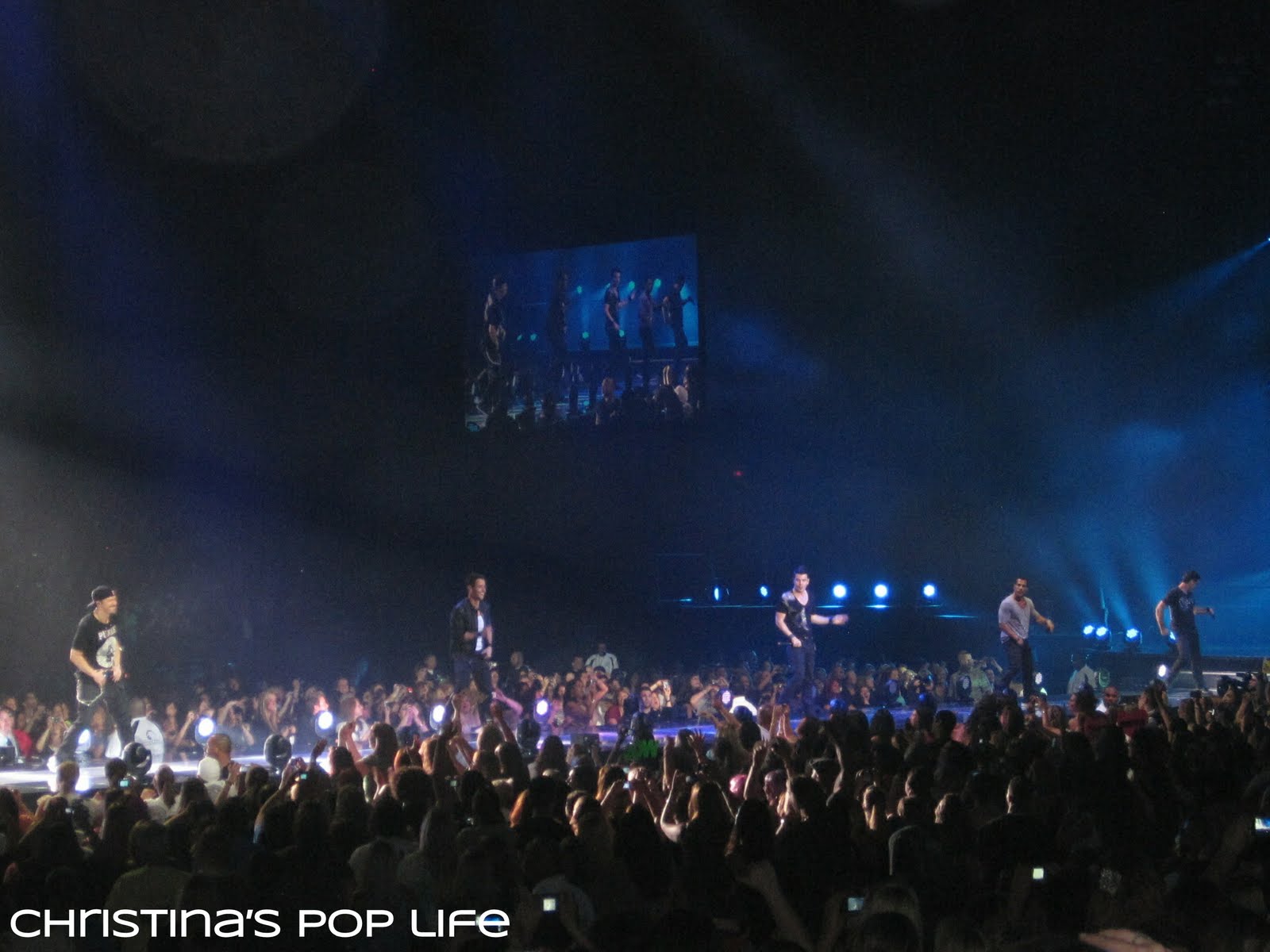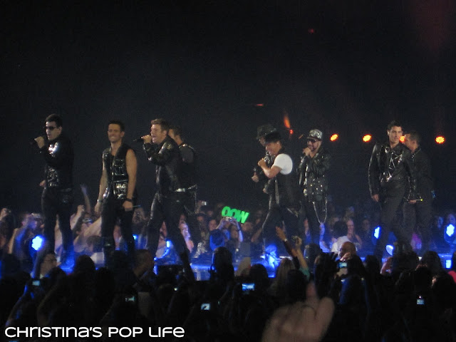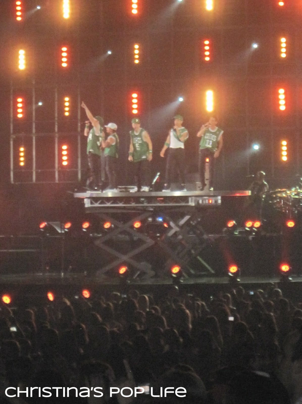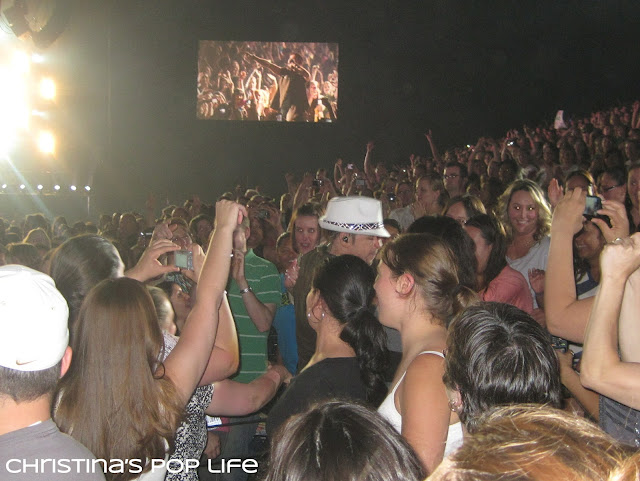 The stage was cool, very similar to Britney's. There was a main stage and a B stage connected by a really long catwalk. The catwalk was huge, not just a little runway, and they performed entire songs and dance routines on it. And both stages had elevated platforms that they used all the time.