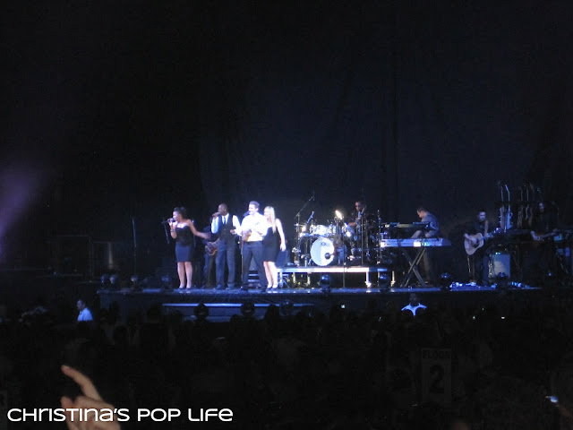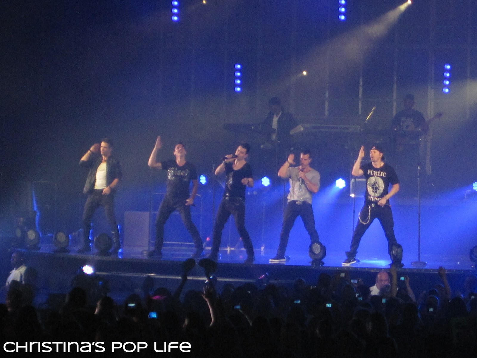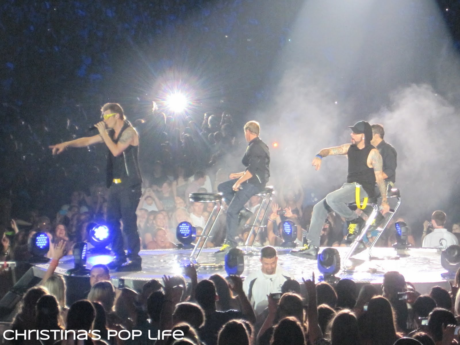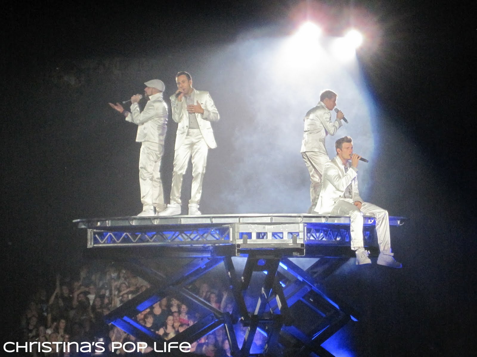 The stage was cool, very similar to Britney's. There was a main stage and a B stage connected by a really long catwalk. The catwalk was huge, not just a little runway, and they performed entire songs and dance routines on it. And both stages had elevated platforms that they used all the time.