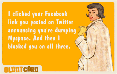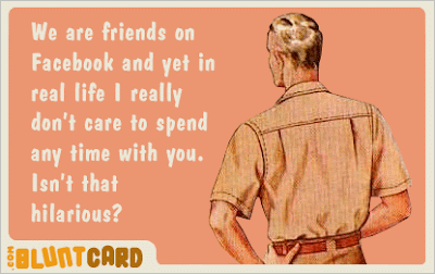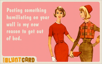 My sister wrote a pretty hilarious status update on Facebook about how she sang the entire theme song to Friends and her husband looked at her with a blank stare, having no idea what the song was from. She wrote, “I don’t want to be one of those wives who criticize their husbands on Facebook, but I have to share this...” She got a comment from a friend that said, “When women only say nice things about their husbands, they obviously have marriage problems.” WTF?