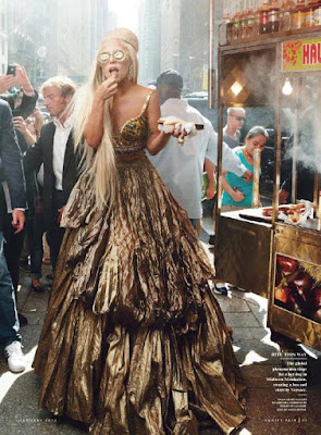 What a fun shoot! I love the photos of her in gowns at the laundromat and eating from a cart.